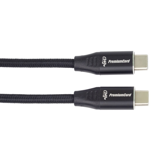 PREMIUMCORD Kabel USB-C M/M, 240W 480Mbps černý bavlněný oplet, 1m