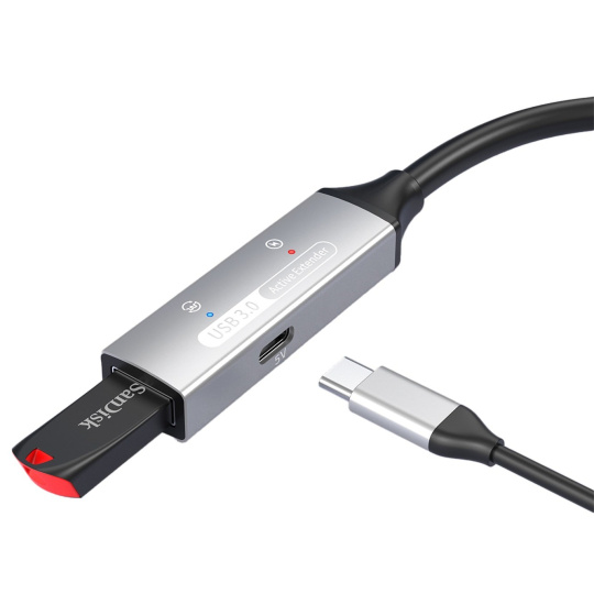 Kabel má aktivní zesilovač a je vhodný pro prodloužení USB3.0 a USB2.0 kabelu o dalších 5m . Standardní USB pasivní kabel je omezen délkou maximálně 5m. Pomocí tohoto aktivního kabelu je možné prodloužit délku o 5m.