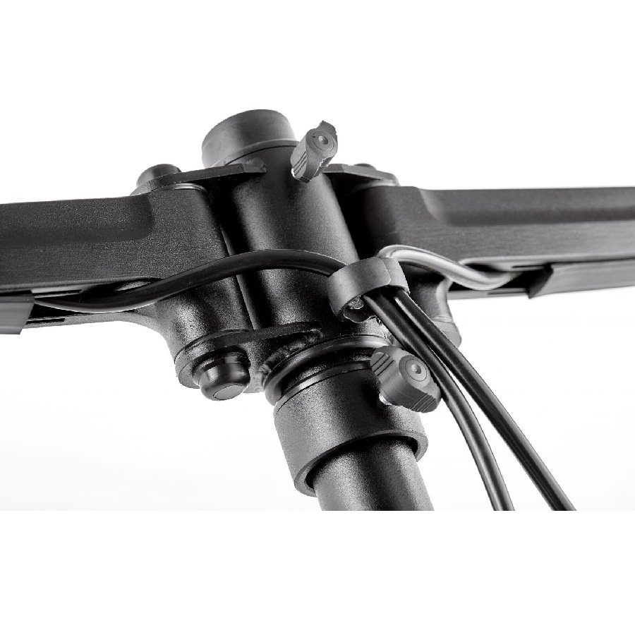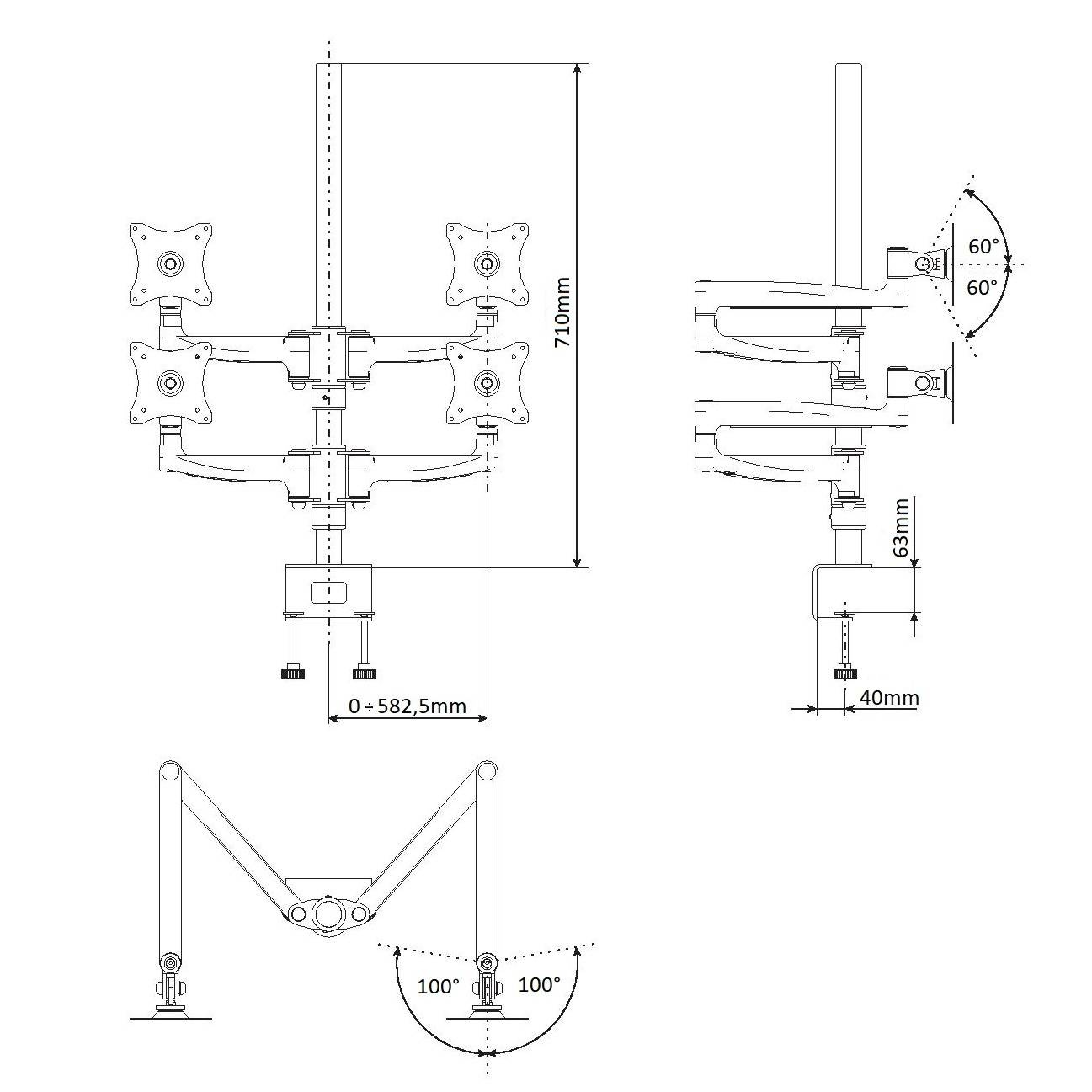 Profesionální stolní držák 4 monitorů EDBAK DM141 Profesionální kancelářský držák pro nejnáročnější, plně polohovatelný držák na 4 monitory 17-29", VESA 75x75 a 100x100, nosnost 40kg I nejnáročnější zákazníci si u nás přijdou na své - nabízíme Vám špičkový dizajnový držák na 4 monitory s úhlopříčkou 17-29". Výškové polohování, nezávislé délkové nastavení, otáčení do stran, náklon. Systém pro vedení kabeláže. 2 typy stolního uchycení - na okraj nebo do prostoru. Barevné provedení černé, záruka 10 let. Profesionální stolní držák na 4 monitory Edbak DM141 Technické údaje: nosnost 40kg na monitory 19-29" podpora VESA standardů 75x75 a 100x100 výškové polohování max. 720mm náklon monitoru +/-60° otáčení do stran +/-90° rotace monitorů +/-360° nastavení vzdálenosti monitoru od stolního uchycení systém pro vedení kabeláže 2 stolní úchyty - na okraj nebo do prostoru stolové desky barevné provedení černé profesionální kvalita, krásný dizajn záruka 10 let Držáky na 4 monitory EDBAK DM141 podporují VESA standardy: VESA 75x75 VESA 100x100.