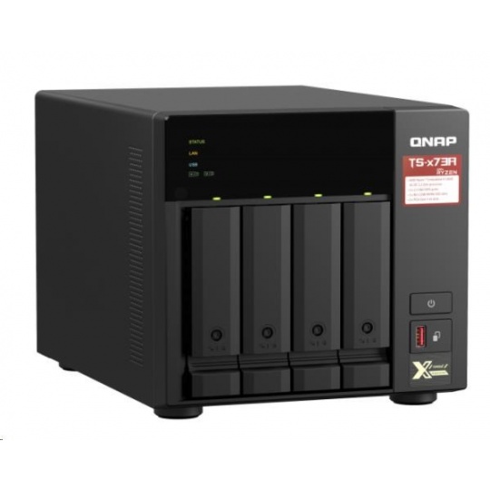 Disponuje čtyřjádrovým procesorem AMD Ryzen™ řady V1000 V1500B, který poskytuje vysoký výkon systému díky až čtyřem jádrům / 8 vláknům a Turbo Core až 2,2 GHz. Zařízení TS-473A disponuje dvěma porty 2,5GbE RJ45 a dva sloty PCIe Gen 3, abyste mohli flexibilně nasazovat sítě 5GbE/10GbE. Dva sloty M.2 NVMe SSD pro technologii Qtier a SSD Cache umožňují neustálou optimalizaci úložiště. Zařízení TS-473A podporuje systémy QTS a QuTS hero, což uživatelům umožňuje flexibilně přepínat operační systém na základě jejich požadavků.