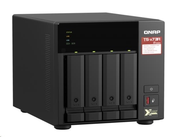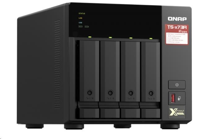 Disponuje čtyřjádrovým procesorem AMD Ryzen™ řady V1000 V1500B, který poskytuje vysoký výkon systému díky až čtyřem jádrům / 8 vláknům a Turbo Core až 2,2 GHz. Zařízení TS-473A disponuje dvěma porty 2,5GbE RJ45 a dva sloty PCIe Gen 3, abyste mohli flexibilně nasazovat sítě 5GbE/10GbE. Dva sloty M.2 NVMe SSD pro technologii Qtier a SSD Cache umožňují neustálou optimalizaci úložiště. Zařízení TS-473A podporuje systémy QTS a QuTS hero, což uživatelům umožňuje flexibilně přepínat operační systém na základě jejich požadavků.