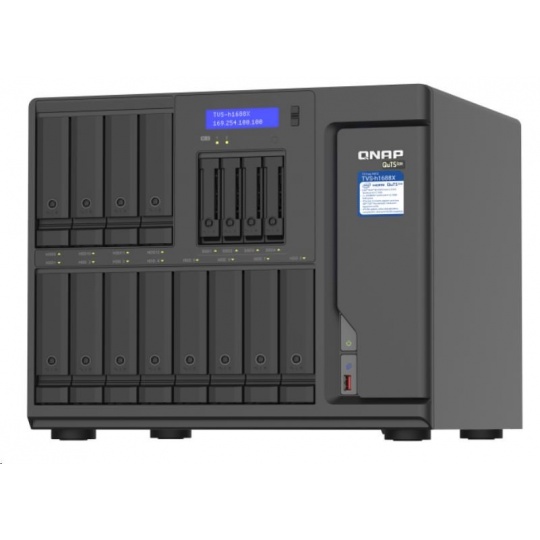 | Pozice pro diskové jednotky | 12 x 3,5" SATA 6 Gb/s, 3 Gb/s + 4 x 2,5" SATA 6 Gb/s, 3 Gb/s Systém se dodává bez HDD. Seznam kompatibilních disků HDD najdete na stránce https://www.qnap.com/compatibility/ |