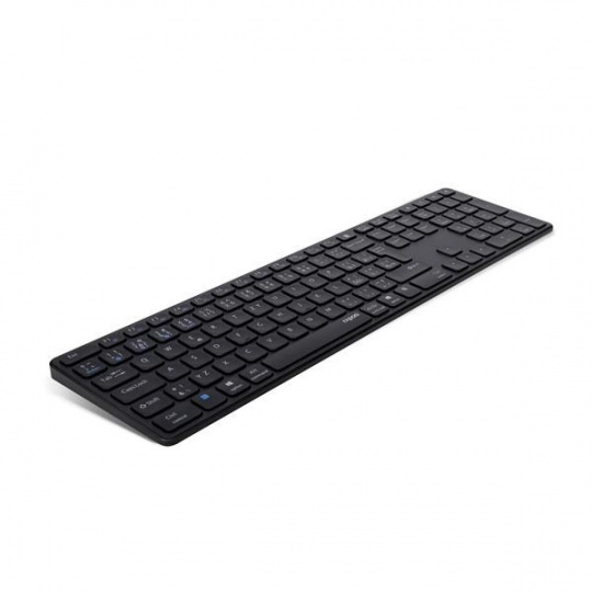 Tato ultratenká klávesnice spojuje prvotřídní materiály s elegantní konstrukcí a pohodlím nezkrácené klávesnice. Díky pevné hliníkové základně je tělo klávesnice odolné a pevné. Zároveň dodá každému pracovnímu místu stylový punc. Klávesnice E9800M je nejen vyspělá konstrukcí, ale také funkcionalitou. Nabízí vícerežimovou technologii připojení firmy Rapoo – prostřednictvím spolehlivého bezdrátového vysílače 2,4 GHz, Bluetooth 3.0 a 5.0 – umožňuje současné připojení a přepnutí několika zařízení (s automatickým párováním). Kromě toho je klávesnice vybavena multimediálními klávesami a ekologicky šetrným dobíjecím akumulátorem tak, abyste si mohli plně vychutnat volnost bez kabelů.