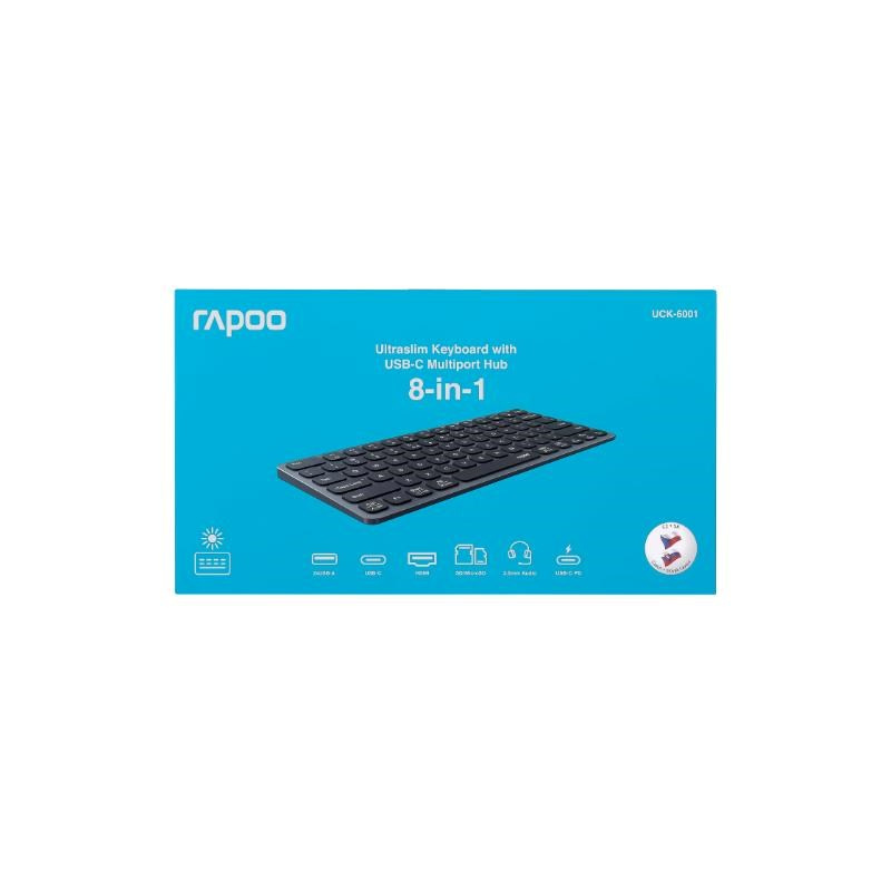 RAPOO Klávesnice UCK-6001 s 8v1 USB-C Hub, Drátová USB-C, CZ/SK, černá