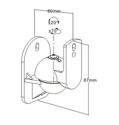 Držáky na reproduktory, 2ks - vzdálenost od stěny 6cm, výška držáku 7cm, reproduktor lze horizontálně otáčet 140° a naklonit +/-20°, maximální zatížení 3,5 kg, barva černá..