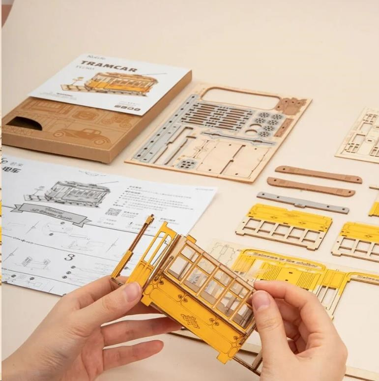 RoboTime dřevěné 3D puzzle Historická tramvaj