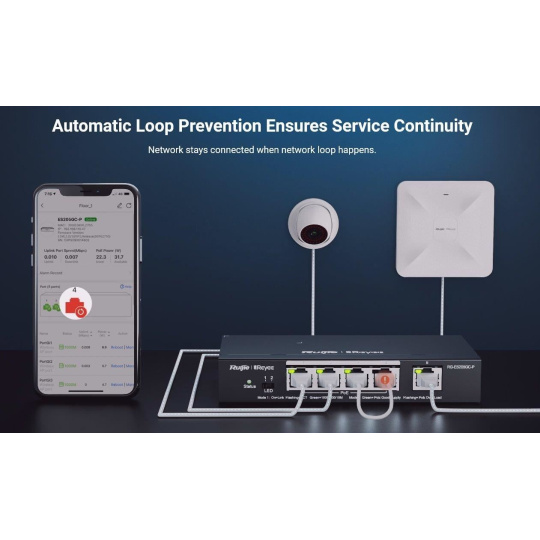 Registrace dealerské ceny: https://docs.google.com/forms/d/1sWwsswsbBk36eZx4CJrfl47qUvrORQyYz7kMjrt2f_c/prefill Popis produktu Inteligentní cloudově i přes webové rozhraní spravovatelný smart desktop switch RG-ES208GC od značky Ruijie, nabízí cenově efektivní řešení s 8 Gigabit LAN porty. Tento kompaktní přepínač je ideální pro síťové aplikace, které vyžadují výkon a spolehlivost. Co se výčtu funkcí týče, switch nabízí tichý chod bez ventilátorů, podporu až 16 VLAN, DHCP snooping, testování kabelu a ochranou proti zakruhování. Klíčové vlastnosti • 8× 10/100/1000 Mbps LAN porty • Kvalitní provedení, kovové šasi • Bez venilátoru • Nízká spotřeba - max. 4 W • Správa přes webové rozhraní a cloud • Celoživotní správa na Ruijie Cloud kdykoli a kdekoli • Rozpoznávání IP kamer - jedinečná hodnota pro CCTV síť • Automatická prevence proti zakruhování Obsah balení • Zařízení • Napájecí adaptér 5 V/1 A Technické parametry Konektory a rozhraní Rychlost LAN:(8) 10/100/1000Mbps Napájení Typ napájení:DC konektor Max. spotřeba energie [W]:4 Napájení přes konektor/svorkovnici:5V / 1A Fyzické charakteristiky Provedení:Desktop Ventilátory:Bez ventilátoru Šasi:Kovové Tlačítka:Reset Provozní teplota [°C]:0 až 40 Šířka [mm]:160 Výška [mm]:24 Hloubka [mm]:75 Obecné Rychlost přepínání [Gbps]:16 Tabulka MAC adres:4000 Rychlost předávání paketů [Mpps]:11,9 Software Web management:Ano Management:Webové rozhraní, Ruijie cloud Funkce:VLAN, DHCP snooping Výchozí IP adresa:10.44.77.200 Výchozí jméno a heslo:Nastavuje se při prvním spuštění.