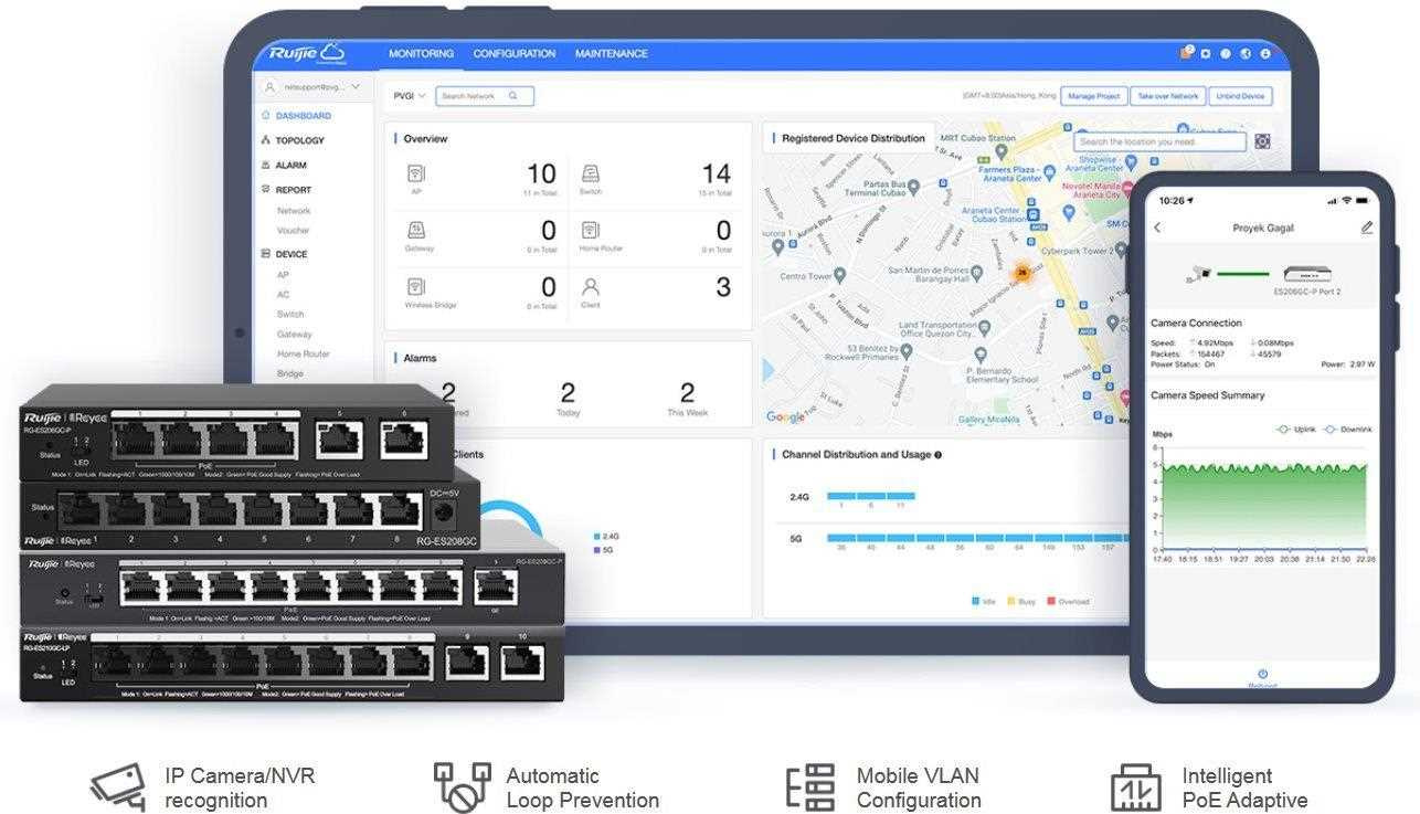 Registrace dealerské ceny: https://docs.google.com/forms/d/1sWwsswsbBk36eZx4CJrfl47qUvrORQyYz7kMjrt2f_c/prefill Popis produktu Inteligentní cloudově i přes webové rozhraní spravovatelný smart desktop switch RG-ES208GC od značky Ruijie, nabízí cenově efektivní řešení s 8 Gigabit LAN porty. Tento kompaktní přepínač je ideální pro síťové aplikace, které vyžadují výkon a spolehlivost. Co se výčtu funkcí týče, switch nabízí tichý chod bez ventilátorů, podporu až 16 VLAN, DHCP snooping, testování kabelu a ochranou proti zakruhování. Klíčové vlastnosti • 8× 10/100/1000 Mbps LAN porty • Kvalitní provedení, kovové šasi • Bez venilátoru • Nízká spotřeba - max. 4 W • Správa přes webové rozhraní a cloud • Celoživotní správa na Ruijie Cloud kdykoli a kdekoli • Rozpoznávání IP kamer - jedinečná hodnota pro CCTV síť • Automatická prevence proti zakruhování Obsah balení • Zařízení • Napájecí adaptér 5 V/1 A Technické parametry Konektory a rozhraní Rychlost LAN:(8) 10/100/1000Mbps Napájení Typ napájení:DC konektor Max. spotřeba energie [W]:4 Napájení přes konektor/svorkovnici:5V / 1A Fyzické charakteristiky Provedení:Desktop Ventilátory:Bez ventilátoru Šasi:Kovové Tlačítka:Reset Provozní teplota [°C]:0 až 40 Šířka [mm]:160 Výška [mm]:24 Hloubka [mm]:75 Obecné Rychlost přepínání [Gbps]:16 Tabulka MAC adres:4000 Rychlost předávání paketů [Mpps]:11,9 Software Web management:Ano Management:Webové rozhraní, Ruijie cloud Funkce:VLAN, DHCP snooping Výchozí IP adresa:10.44.77.200 Výchozí jméno a heslo:Nastavuje se při prvním spuštění.