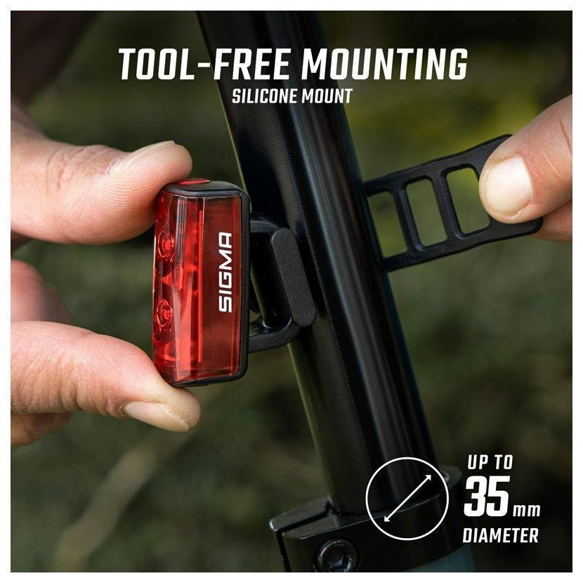 Světlo Buster RL 80 lze díky silikonovému pásku namontovat během pár sekund bez použití nářadí na jakoukoliv sedlovku o průměru až 35 mm.
