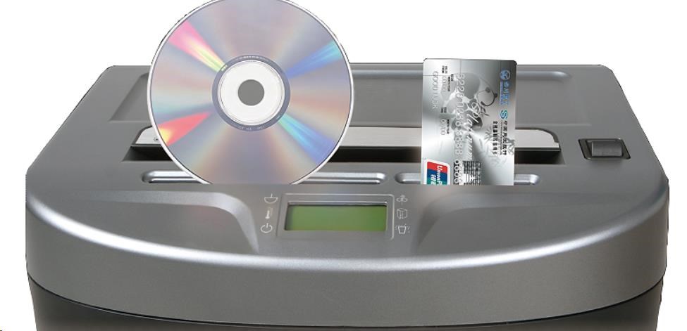 Kvalitní skartovací stroj atraktivního designu, s vysokým stupněm utajení skartovaného materiálu. Vhodný pro kanceláře a úřady. Skartovač je vybaven bezpečnostní funkcí Safe Touch, která zastaví stroj při dotyku vstupní štěrbiny rukou. LCD display ke kontrole zapnutých funkcí. Stroj je standardně vybaven automatickým systémem start/stop, zpětným chodem, tepelnou pojistkou motoru proti přehřátí a signalizací přeplněného koše. Příležitostně lze skartovat sešívací sponky. Samostatný vstup na kreditní karty nebo CD. Tichý chod stroje-55 dB. Lehce vyprázdnitelná odpadní nádoba o objemu 35 l. Stupeň utajení dle vyhlášky č. 528/2005 - T - tajné. Součástí stroje jsou pojezdová kolečka. Inovace od roku 2015 tišší motor a zvýšený výkon na 15 listů. Vstup na papír: 230 mm Šíře řezu:2x10 mm Max. kapacita skartace listů: 12A4/70g m2 Skartace sešívacích sponek: ano Skartace kreditních karet: ano Skartace CD: ano Objem odpadní nádoby: 35 l Automatický start/stop: ano Tepelná pojistka motoru: ano Rozměry: 390 x 305 x 645 mm Hmotnost: 23 kg.