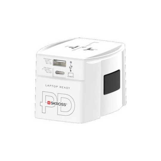 SKROSS MUV USB AC65PD umožňuje bezpečné připojení elektronických zařízení ve více než 220 destinacích po celém světě. Díky integrované rychlonabíječce s porty USB-C a USB-A můžete současně napájet notebook, telefon, tablet, powerbanku nebo jiná zařízení. Navíc nemusíte pořizovat USB-C kabel, je přibalen k adaptéru.