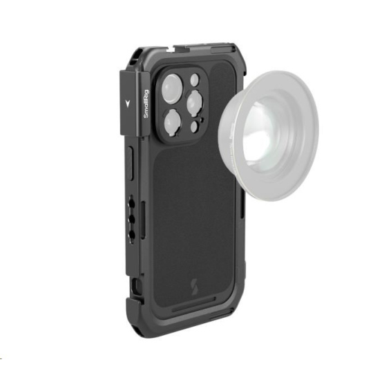 A dedicated mobile video cage for iPhone 16 Pro enables usage with protective phone cases for wide expansion options and all-around phone protection.