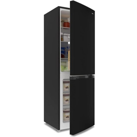 Praktické uložení potravin umožňují 3 nastavitelné police a jeden úložný box v chladicí části a tři šuplíky v mrazáku. Ve dveřích najdete poličku na nápoje a dvě horní poličky na drobnější potraviny. Dveře je možné nastavit pro levé nebo pravé otevírání.