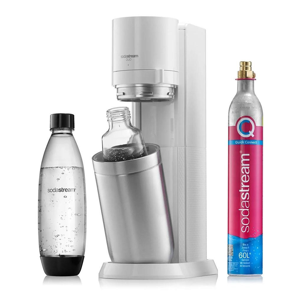 „DUO“ je nejpokročilejší způsob, jak si perlit vodu. Díky kombinaci skleněných a plastových lahví vhodných do myčky nádobí se už nikdy nebudete muset obejít bez svých oblíbených nápojů, ať už doma nebo na cestách. „DUO“ navíc disponuje novou technologií Quick Connect pro rychlé a snadné vkládání lahve s CO2..