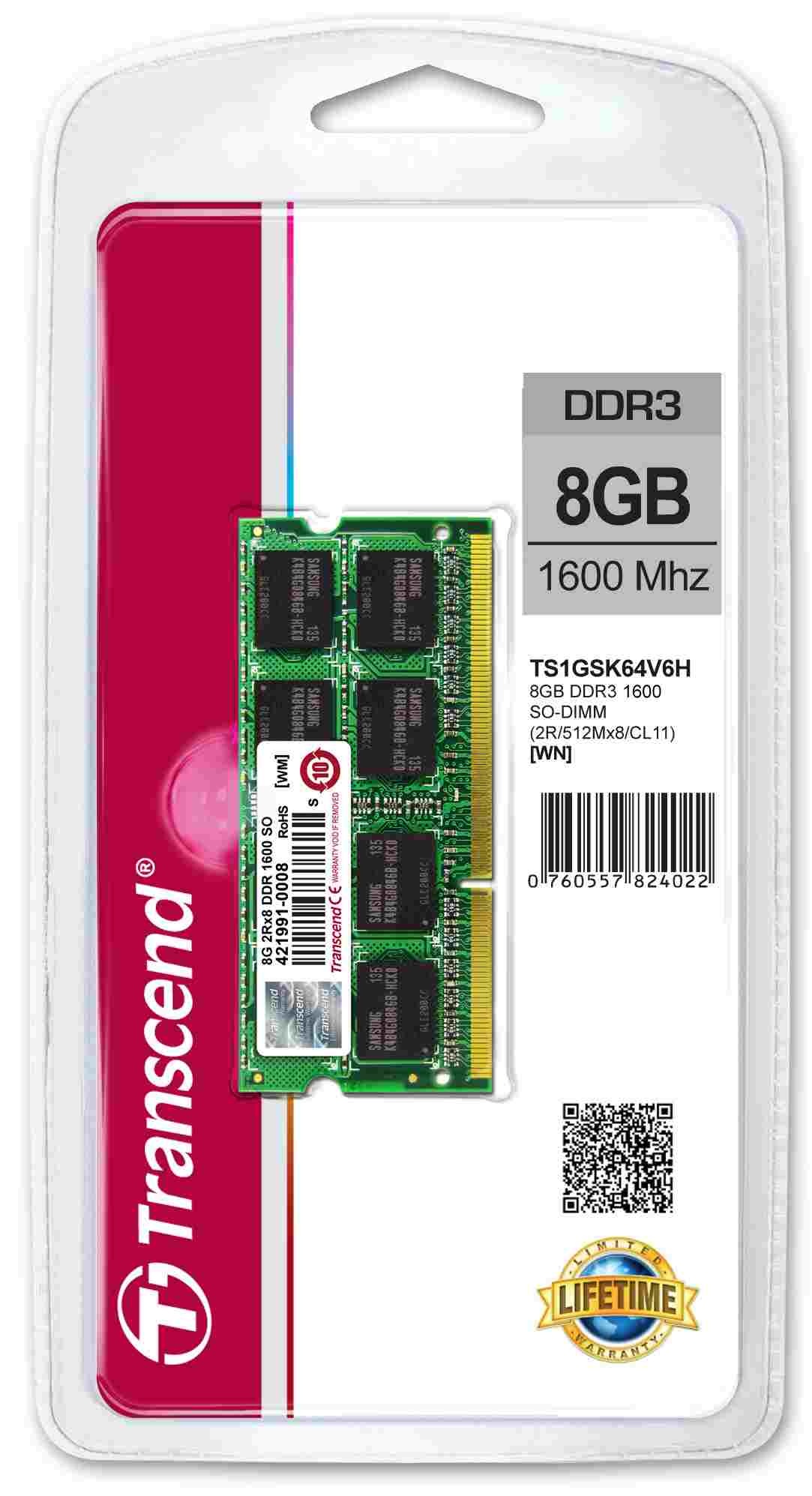 TRANSCEND SODIMM DDR3 8GB 1600MHz 2Rx8 CL11