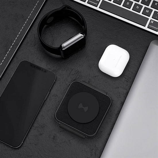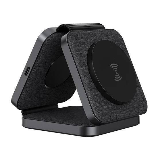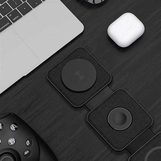 - hlavní nabíjecí plocha pro telefon (až 15 W), vyklápěcí nabíjecí plocha pro Apple Watch (3 W) a sekundární nabíjecí plocha pro sluchátka/další telefon (5 W)
