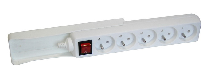 Bílý držák na 5 až 6 zásuvek....