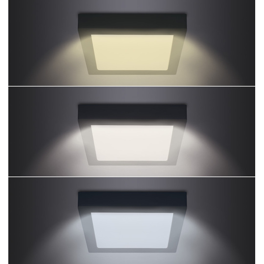 Solight LED mini panel CCT, přisazený, 24W, 1800lm, 3000K, 4000K, 6000K, čtvercový, černá barva