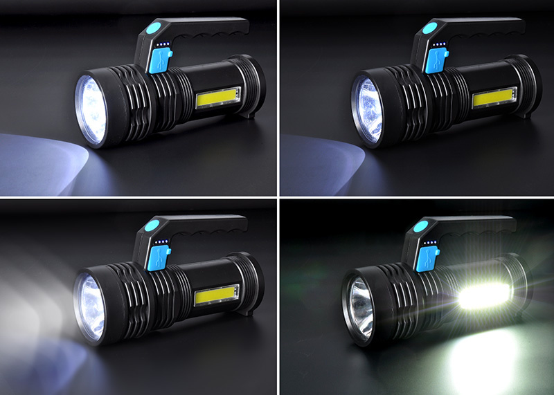 - LED ruční nabíjecí svítilna s předním a bočním zdrojem světla