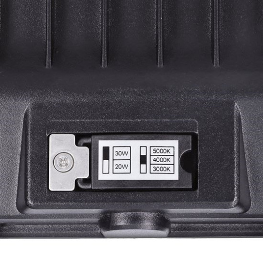 Výkonný LED reflektor řady TOP s integrovaným pohybovým senzorem přináší maximální pohodlí a efektivitu pro venkovní osvětlení. Uživatel může snadno přepínat mezi dvěma úrovněmi výkonu – 30W (3900lm) a 20W (2600lm), což umožňuje přizpůsobit intenzitu světla podle konkrétní situace. Dále je možné nastavit teplotu světla na teplou, neutrální nebo studenou bílou (3000K/4000K/5000K), a to pomocí praktického přepínače na těle reflektoru.
