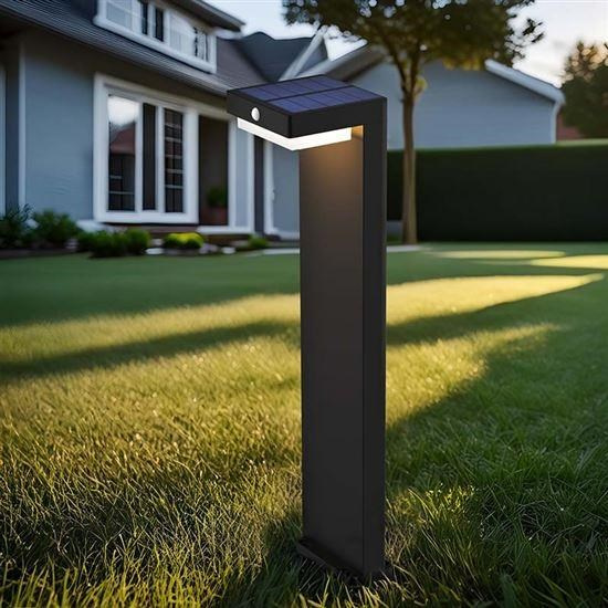 LED sloupkové osvětlení se solárním panelem a světelným a pohybovým čidlem