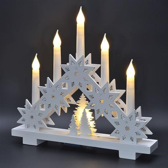 LED vánončí dřevěný svícen s dekorem hvězd, počet LED diod: 5, počet svící: 5, barva světla: teplá bílá (žlutá), napájení: 2 x AA baterie (nejsou součástí), výdrž baterií: cca 100hodin (v závislosti na kvalitě baterií), stupeň krytí: IP20 (vnitřní použití).... více