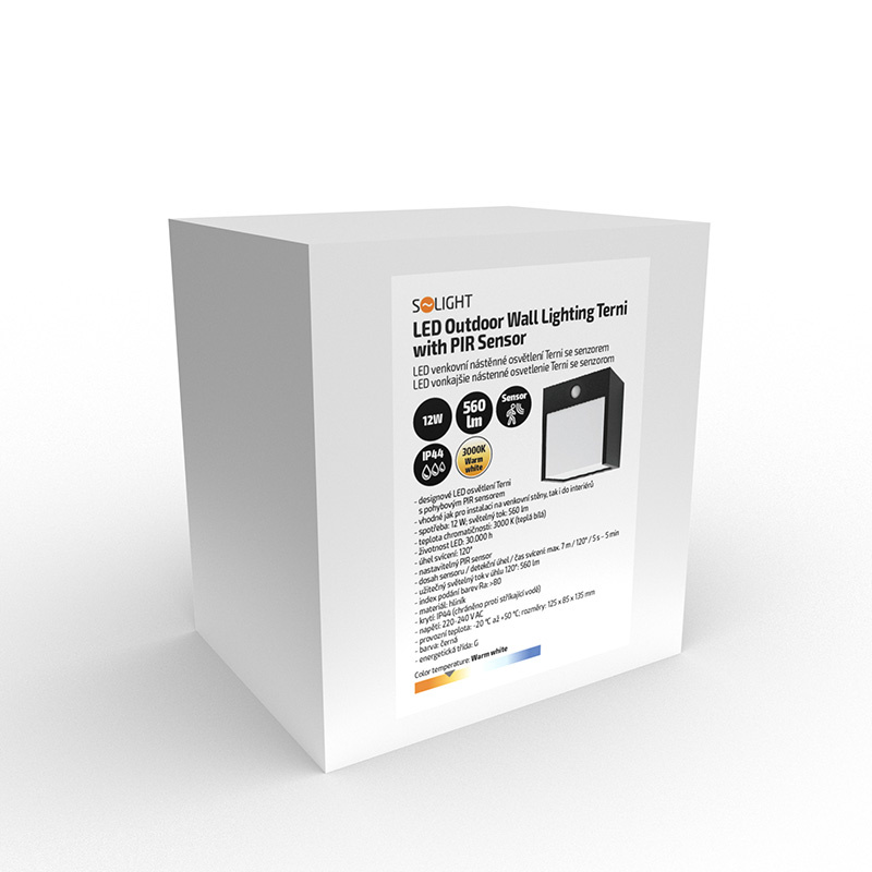 Solight LED venkovní nástěnné osvětlení Terni, 12W, 560lm, 3000K, PIR sensor