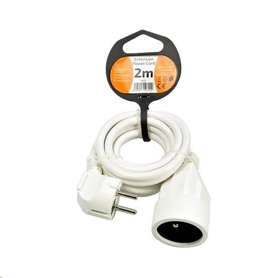 Kompaktní bílý prodlužovací kabel s délkou 2 metry a jednou zásuvkou je ideální pro jednoduché prodloužení elektrické energie v domácnosti, kanceláři nebo dílně. Vhodný pro připojení samostatného zařízení mimo dosah pevné zásuvky.