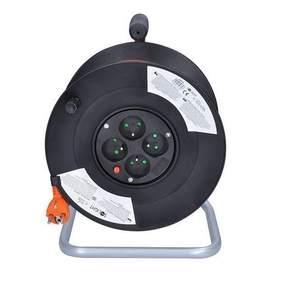 Solight prodlužovací přívod na bubnu, 4 zásuvky, 50m, oranžový kabel, 3x 1,5mm2