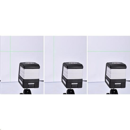 laserová vodováha se zeleným laserem horizontální a vertikální paprsek samonivelační režim nebo režim libovolného úhlu dosah paprsku: až 30m pracovní doba až 8 hodin ochranné pouzdro je součástí balení kontrolka indikující dosažení vodorovné hladiny 1/4" stativový závit třída laseru a vlnová délka: II., 505-550nm přesnost nivelace: +-3mm/10m maximální rozsah nivelace: +-4° stupeň krytí: IP54 pracovní teplota: -10° + 50°C 4x AA baterie (nejsou součástí balení).