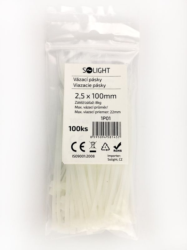 Solight vázací nylonové pásky, barva natural, 100ks, 2,5 x 100mm