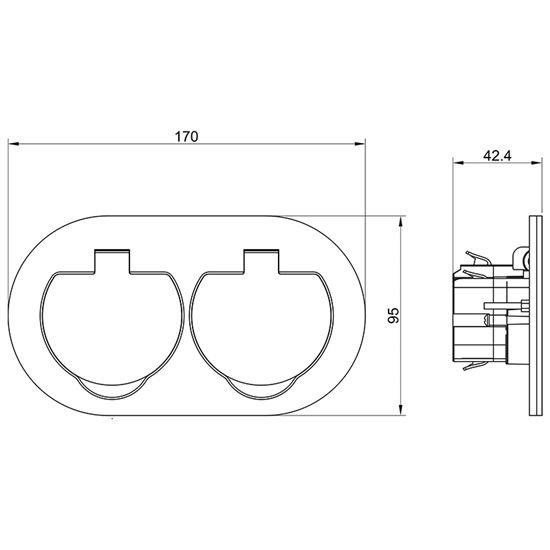 zásuvka dvojnásobná uzemněná 2x (2P+E), okrouhlý tvar