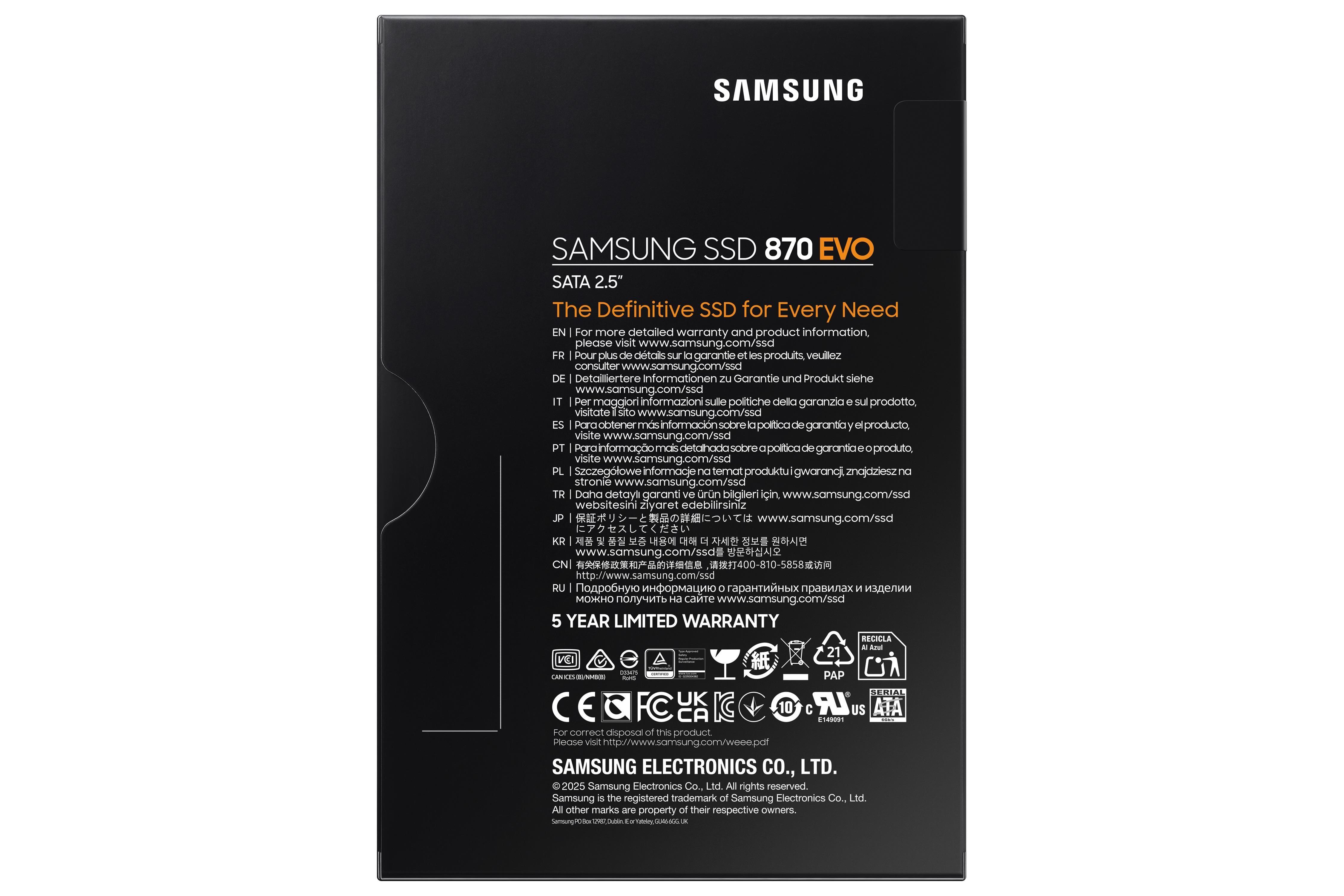 Díky až 4 800 TBW s omezenou pětiletou zárukou je 870 EVO špičkou na trhu ve spolehlivosti. Zvládá vše od každodenní práce na počítači až po zpracování 8K videa. Je vybaven nejnovější šestou generací NAND a MKX, které zajišťují stabilní používání.