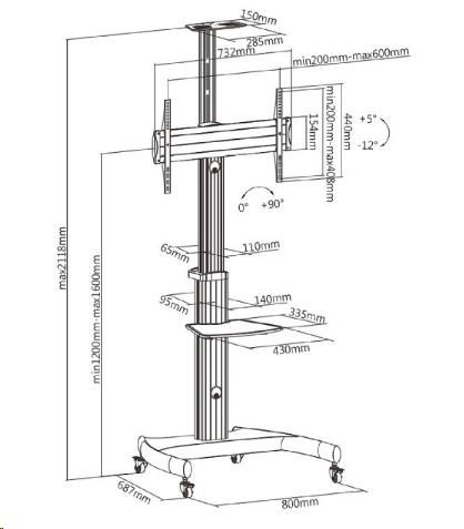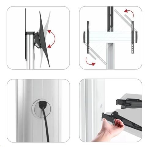 Stojan na Tv a monitory Fiber Mounts M80C1 Stojan na obrazovky 32-70", výškové nastavení, náklon, pivot, police, pojezd Kvalitní stojan pro uchycení jak televizorů tak i monitorů s úhlopříčkou 32-70" a hmotností až 50kg. Stojan je plně nastavitelný - výškově, náklon obrazovky, funkce pivot (otočení obrazovky z horizontální do vertikální polohy), pojízdný s aretací. Konstrukce stojanu má systém pro vedení kabeláže. Televizní stojany Fiber Mounts M80C1 dodáváme včetně police na příslušenství (nosnost 5kg) a horní police (nosnost 5kg) - obě police jsou odnímatelné. Díky velmi pěknému designu a výborné ceně se stojan stal velmi oblíbeným jak pro komerční účely (hotely, firmy, prezentace, výstavy, showroomy, kanceláře, konference), tak i pro domácnosti (obývací pokoje, ložnice, dětské pokoje, pracovny). Velmi kvalitní a také pěkný stojan na televize i monitory 32-70", výškové nastavení, náklon, pojezd, pivot, police - stojan tv Fiber Mounts M80C1 Technické údaje: nosnost 50kg stojan podporuje VESA standardy 200x200 až 600x400 ideální na Tv a monitory s úhlopříčkou 37-70" nastavitelná výška 1200mm až 1600mm (výška od podlahy po střed televizoru) funkce PIVOT: možnost přetočení obrazovky z horizontální do vertikální polohy možnost náklonu obrazovky +5° až -12° součástí balení polička na příslušenství: rozměry 430x335mmm, nosnost 5kg součástí balení polička na kameru nebo projektor: rozměry 285x150mm, nosnost 5kg obě police jsou výškově nastavitelné a odnímatelné konstrukce přizpůsobena pro možnost skrytého vedení kabeláže stabilní a bezpečná podstava s rozměry 800x687mm pojezdová kolečka s brzdou pro zaaretování konstrukce z hliníku profesionální kvalita barevné provedení stříbrné, podstava černá záruka 3 roky Televizní stojan výborné kvality a krásného dizajnu pro výstavy, konference, přednášky, firemní účely, hotely ale i do obývacích pokojů místo televizního stolku - stojan Fiber Mounts M80C1 Profesionální stojan na Tv a monitory Fiber Mounts M80C1 podporuje VESA standardy pro uchycení Tv a monitorů: VESA 200x200 VESA 300x200 a 200x300 VESA 300x300 VESA 400x200 a 200x400 VESA 400x300 a 300x400 VESA 400x400 VESA 600x400.