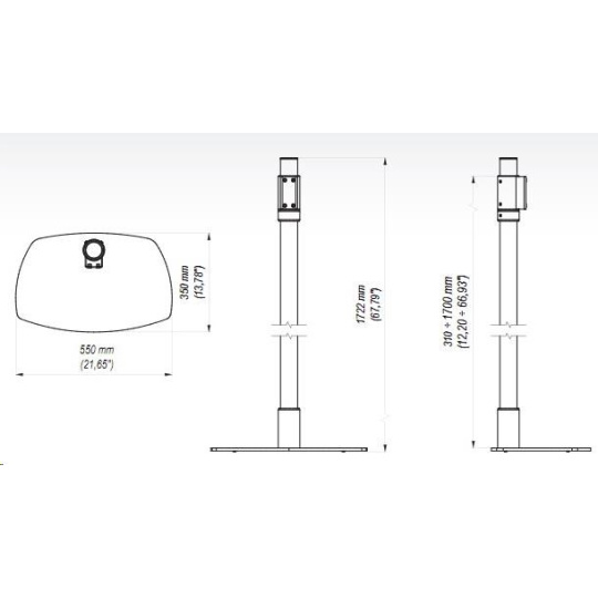 podstavec s navrtáním pro uchycení do podlahy