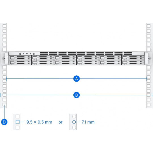 - Podpora montážních otvorů skříně: čtvercový otvor: alespoň 9.5 mm x 9.5 mm kruhový otvor: alespoň 7.1 mm