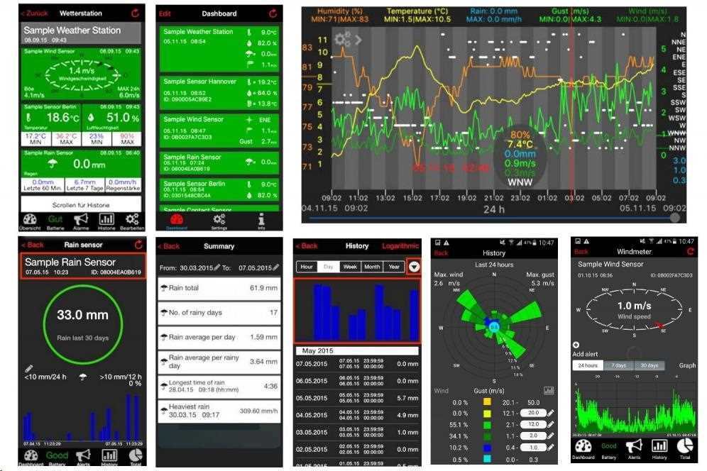 Meteorologická sada umožňuje pomocí bezdrátových čidel měření teploty, relativní vlhkosti, srážek a rychlosti a směru větru a přenos naměřených dat přes bránu a přes Váš router na Internet. Na Vašem mobilním zařízení s operačním systémem iOS 7 a novějším, nebo Android 3.2 a novějším pak můžete pomocí aplikace MOBILE-ALERTS naměřená data sledovat. Dále lze přidat další bezdrátová čidla, kdy maximální počet čidel, které je možné přihlásit k bráně, je 50.