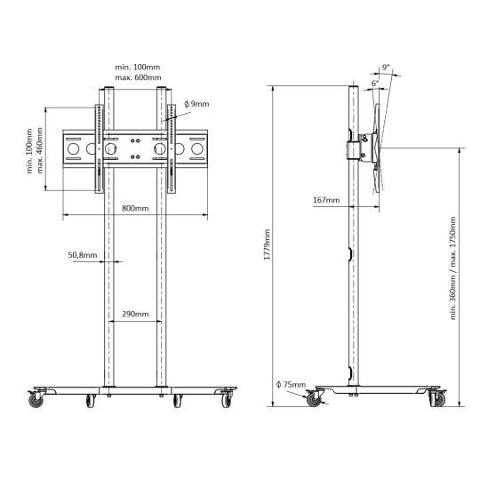 Televizní stojan EDBAK TR1-PWB    Mobilní stojan na Tv 43" až 75", nastavení výšky 30-175cm, naklápění +6°/-9°, VESA 100x100 až 600x400, vedení kabeláže, nosnost 80kg    Tento profesionální velmi kvalitní televizní stojan je vhodný především na prezentaci pomocí televize nebo monitoru o úhlopříčce 43" až 75". Nastavení Tv stojanu je propracováno do posledního detailu: nastavitelná výška obrazovky, nastavitelný náklon obrazovky, korekce roviny obrazovky (výborné v případě nerovnosti podlahy), systém skrytého vedení kabeláže, pojezdová kolečka s aretací. Stojan je velmi stabilní a bezpečný. V případě potřeby je možné dokoupit police na příslušenství, horní polici na kameru, podstavce místo koleček. Ideální pro videokonference a prezentace pomocí obrazové techniky.     Televizní stojan EDBAK TR1-PWB     Technické údaje:  maximální zatížení 80kg na Tv a monitory 43" až 75" VESA standard 100x100 až 600x400 výška stojanu 180cm nastavitelná výška TV dle potřeby po celé výšce stojanu možnost náklonu TV +6° / -9° rozměry podstavy 1127x694mm (ŠxH) systém skrytého vedení kabeláže pojezdová kolečka s brzdou skvělá stabilita a bezpečnost možnost zakoupení police na příslušenství, police na kameru, přihrádky na katalogy, pevné podstavy profesionální výrobek - nejvyšší kvalita záruka 5 let    Stojan na televize a monitory ideální na videokonference a prezentace Edbak TR1-PWB     Televizní stojan Edbak TR1-PWB podporuje VESA standardy:  VESA 100x100 VESA 200x100 VESA 200x200 VESA 300x200 VESA 300x300 VESA 400x200 VESA 400x300 VESA 400x400 VESA 600x400 maximální rozteč VESA pro uchycení Tv 600x460    Na televizní stojan EDBAK TR1-PWB je možné zavěsit všechny typy, značky a velikosti televizorů, které mají hmotnost do 80kg a které podporují kterýkoliv z výše uvedených VESA standardů. Velikost úhlopříčky televize nebo monitoru není podstatná a nehraje žádnou roli.     Skleněná polička na příslušenství ke stojanu Edbak TRS2Horní polička na kameru nebo projektor 250x200mm Edbak CH5     Možnost dokoupení příslušenství:  polička na příslušenství (až 3ks na stojan) horní polička na kameru pevné podstavce - výměna za pojezdová kolečka.