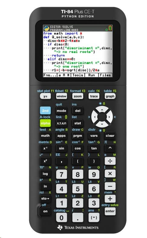 Nechcete udělat při výpočtu chybu? Pomocnou ruku vám podá kalkulačka TEXAS INSTRUMENTS TI-84 PLUS CE-T Python Edition FC. Grafická kalkulačka si poradí s pokročilejšími výpočty, a právě proto se skvěle hodí jak pro střední a vysoké školy, tak pro technické počty v zaměstnání. Kalkulačka hravě zvládá základní funkce typu s odmocninami. TEXAS INSTRUMENTS TI-84 PLUS CE-T Python Edition FC současně ale umí i a goniometrické funkce. O chod kalkulačky se stará baterie CR44 / LR44 (Knoflíková). Předností této kalkulačky je bodový displej. Současně je vybavena krytem, který ochrání kalkulačku před poškrábáním.