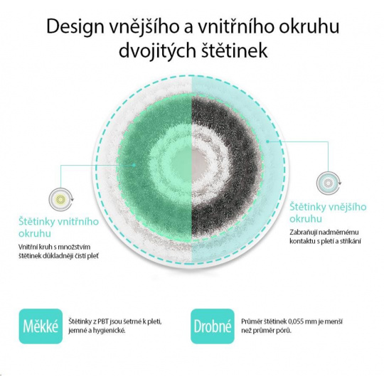 - Silikonový kartáček pro citlivou pokožku, masíruje pleť a zlepšuje krevní oběh