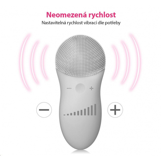 - Rychlost vibrací je nastavitelná pro přizpůsobení různým potřebám pokožky.