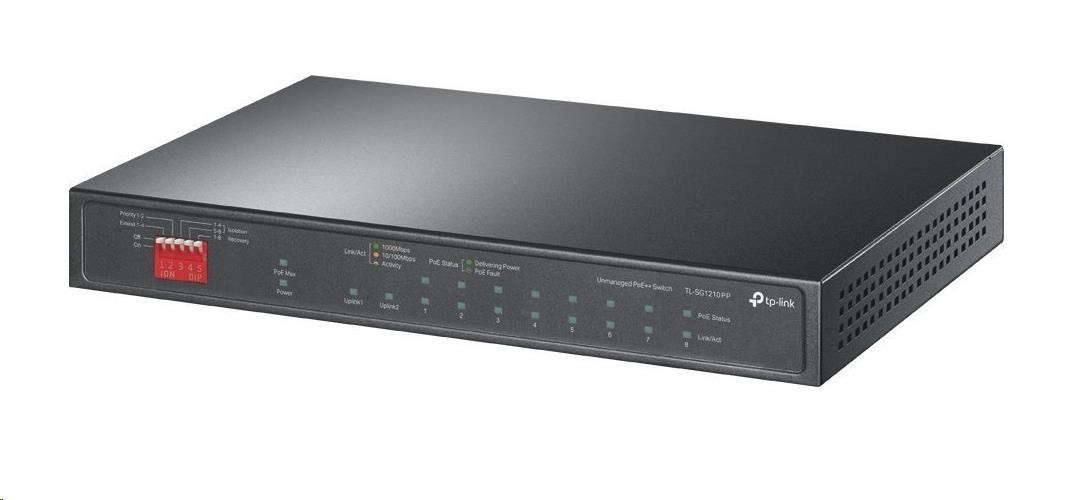TP-Link CCTV switch TL-SG1210PP (9xGbE,1xGbE/SFP combo uplink, 1xGbE uplink, 6xPoE+,2xPoE++,123W, fanless)