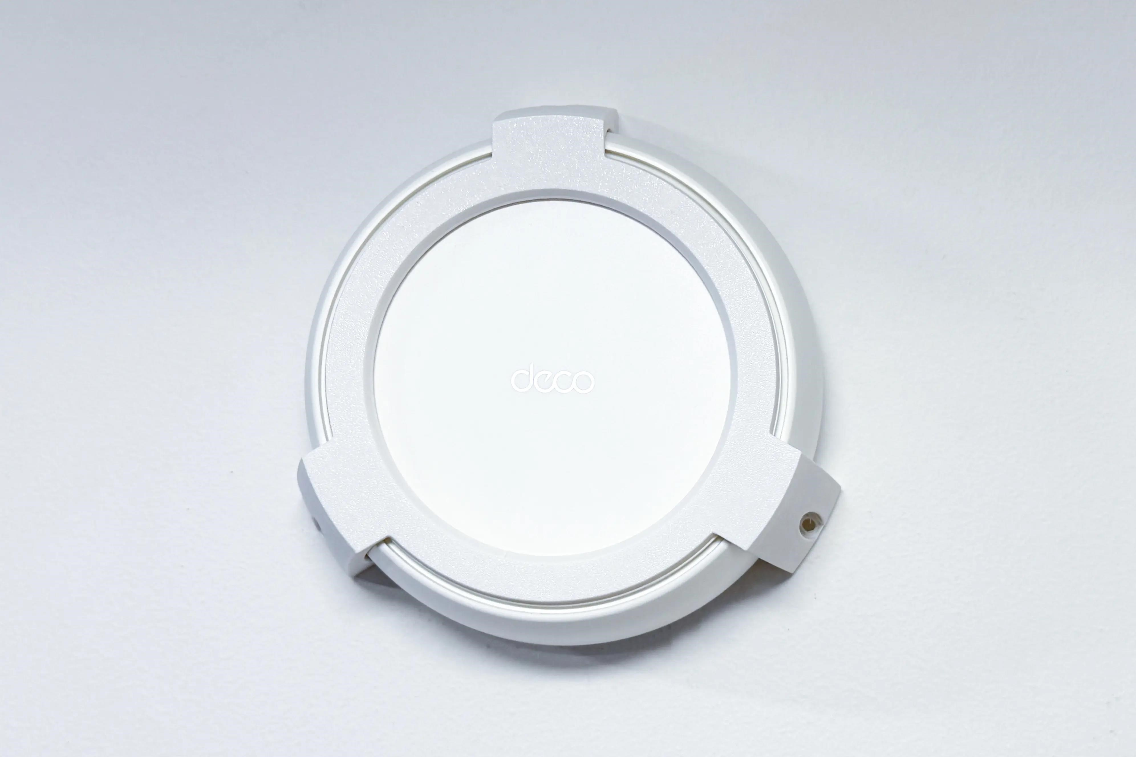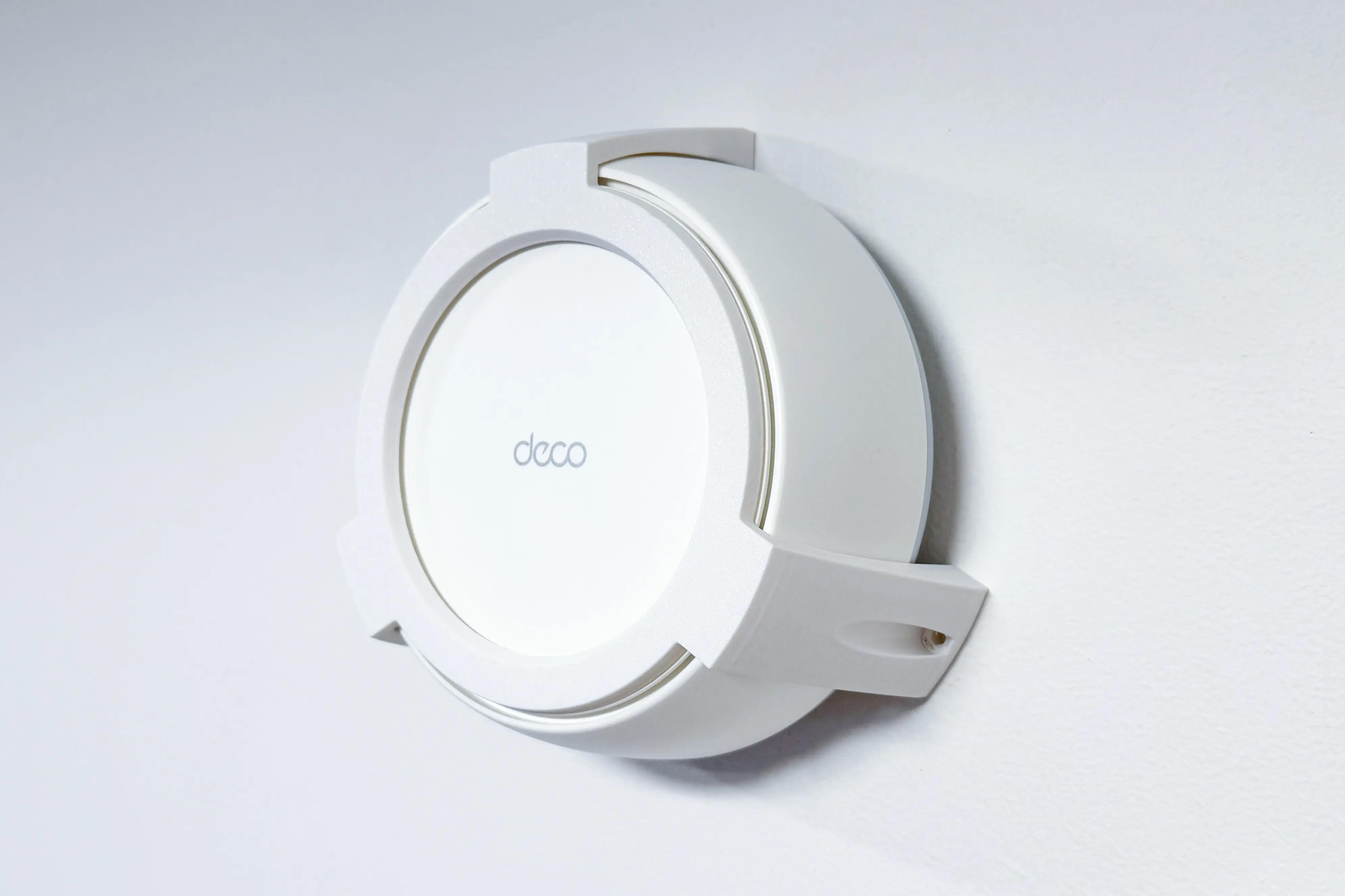 Plastový držák na stěnu a strop pro TP-Link DECO BE25 . Držák je vyroben z PETG materiálu na 3D tiskárně a má bílou barvu.