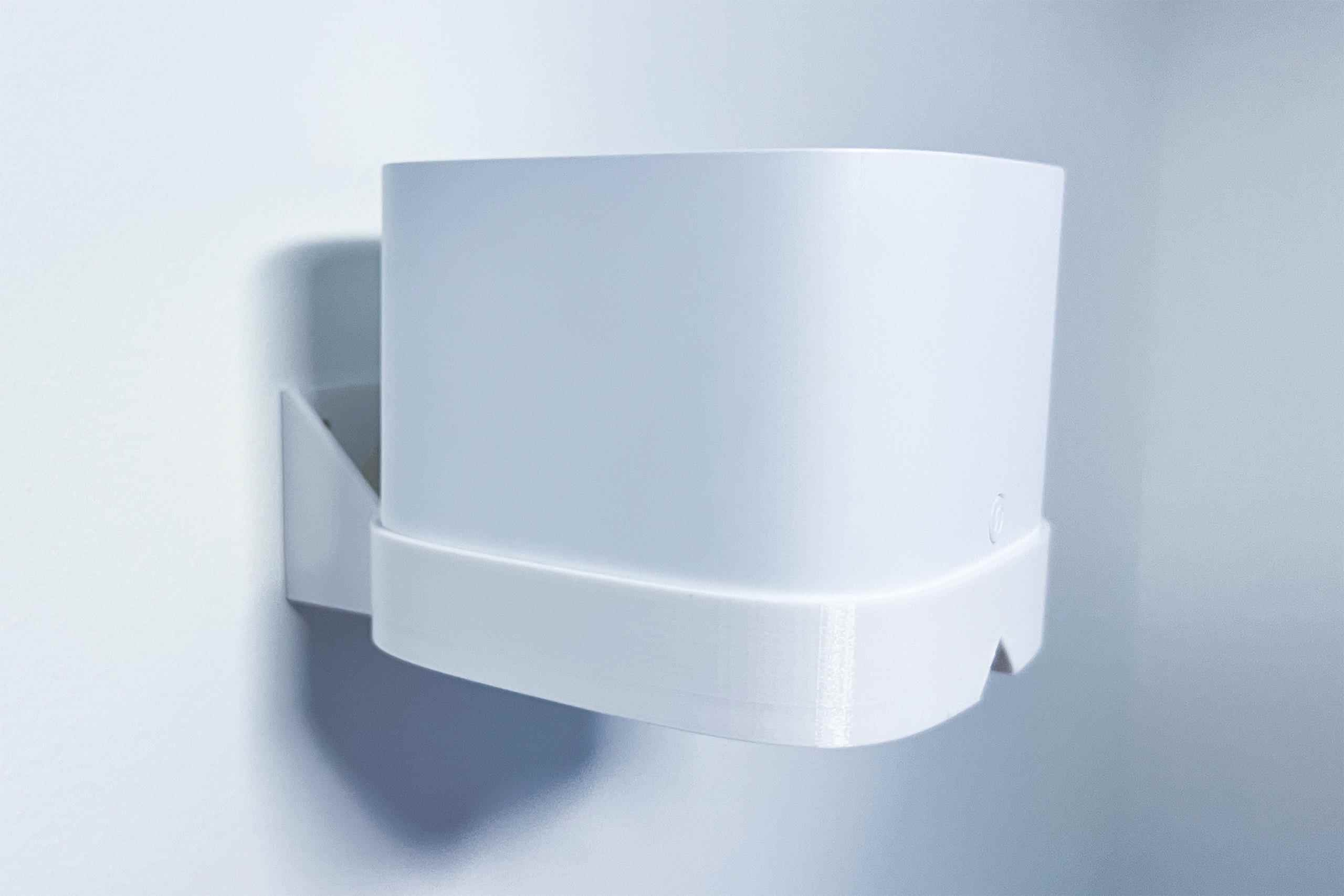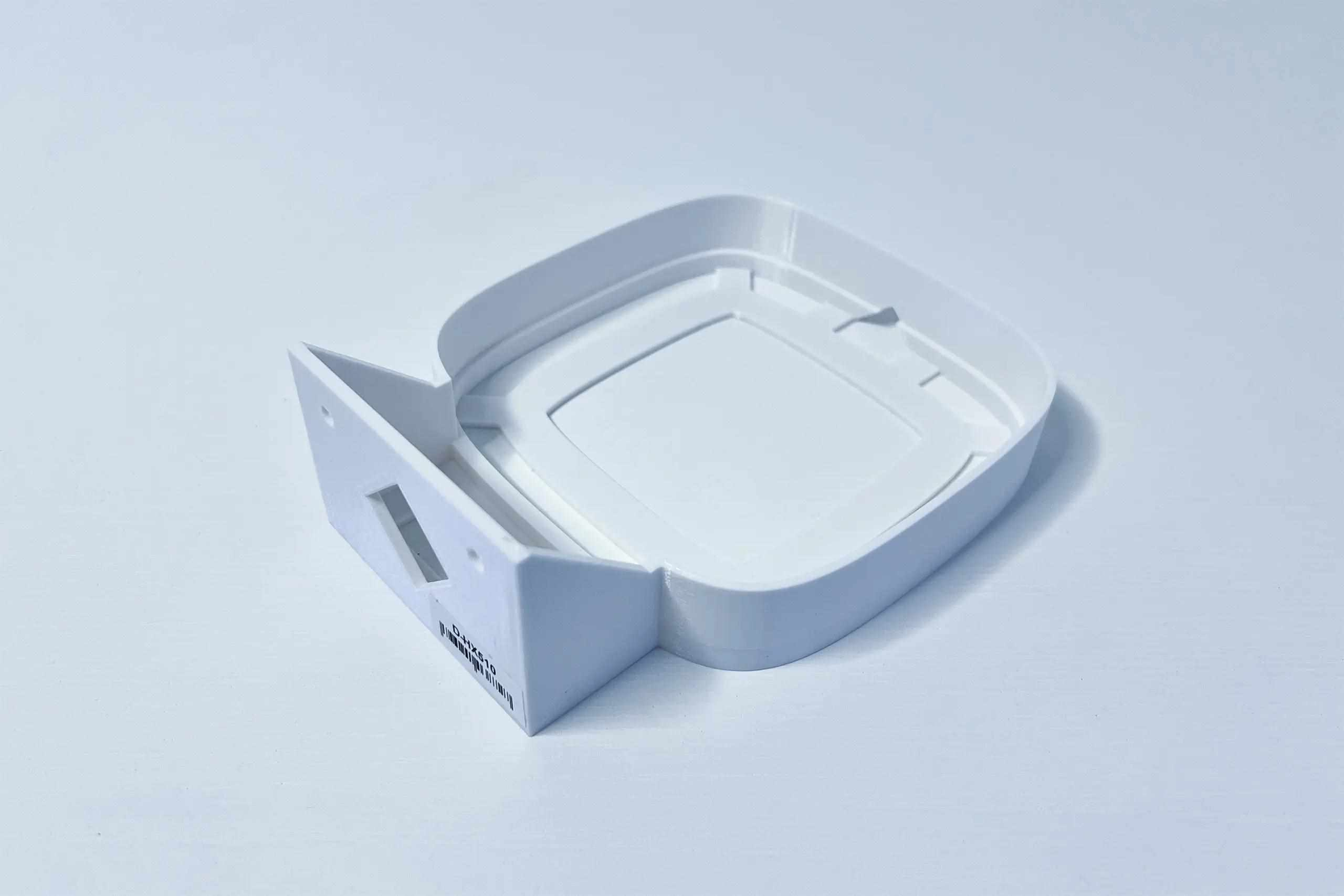 Plastový držák na stěnu pro TP-Link DHX510, HX520 na stěnu a to pomocí dvou šroubů. Držák je vyroben z PETG materiálu na 3D tiskárně a má bílou barvu.