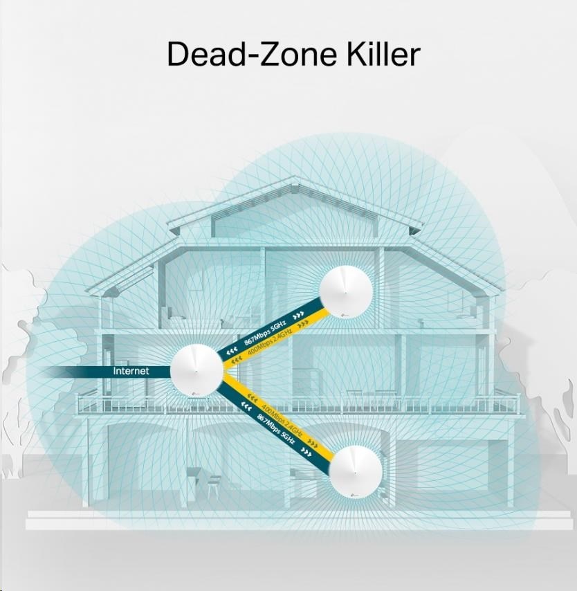 - Díky vyspělé technologii Deco Mesh jednotky vzájemně spolupracují a vytvářejí jednu sjednocenou síť v celém domě s jedním názvem. Když budete domem procházet, zařízení se budou automaticky připojovat vždy k té jednotce Deco, která jim zajistí signál s nejvyšší možnou rychlostí.