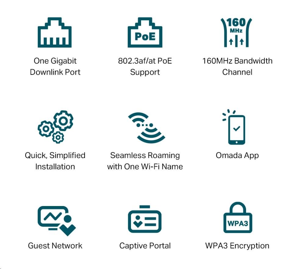 • Centralizovaná cloudová správa: Integrace s platformou Omada SDN umožňuje cloudový přístup a vzdálenou správu.