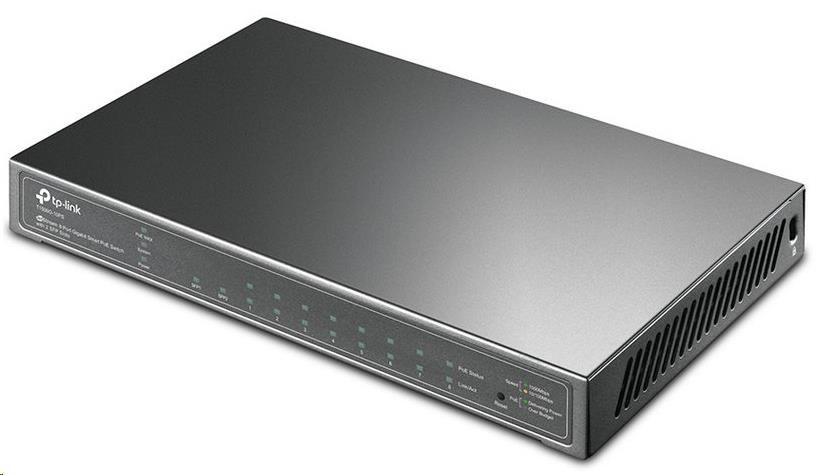 10portový gigabitový inteligentní switch s 8 porty PoE+ a 2 SFP porty