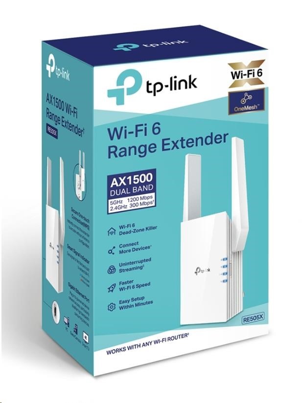 - RE505X přichází s poslední bezdrátovou technologií Wi-Fi 6, která přináší vyšší rychlost, větší kapacitu a snížené přetížení sítě.