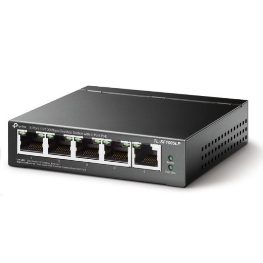 TP-Link switch TL-SF1005LP (5x100Mb/s, 4xPoE, 41W, fanless)