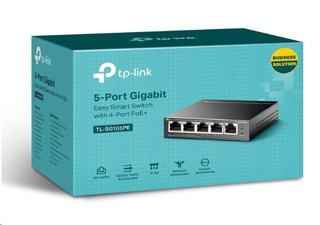 TP-Link Easy Smart switch TL-SG105PE (5xGbE, 4xPoE+, 65W, fanless)